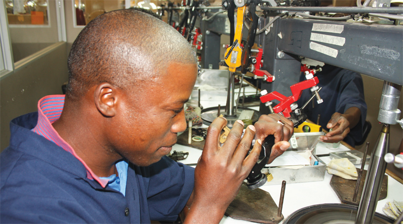 The diamond cutting and polishing factories in Namibia have been in decline, now employing only one thousand people.